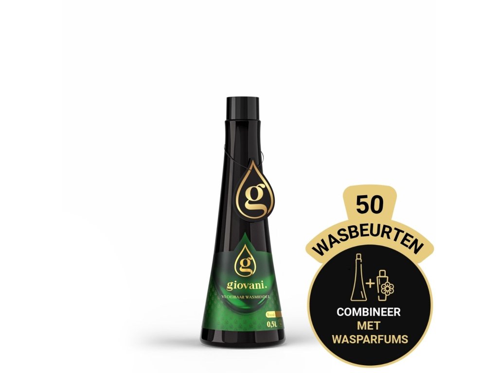 Wassen hoeft geen vervelende verplichting te zijn. Met het vloeibaar wasmiddel Giovani® FRESH wordt wassen een verfrissende ervaring. Dit hooggeconcentreerde wasmiddel reinigt niet alleen uw was grondig, maar omhult deze ook met een lichte, frisse groene geur van het regenwoud, die een gevoel van zuiverheid, frisheid en harmonie met de natuur oproept.