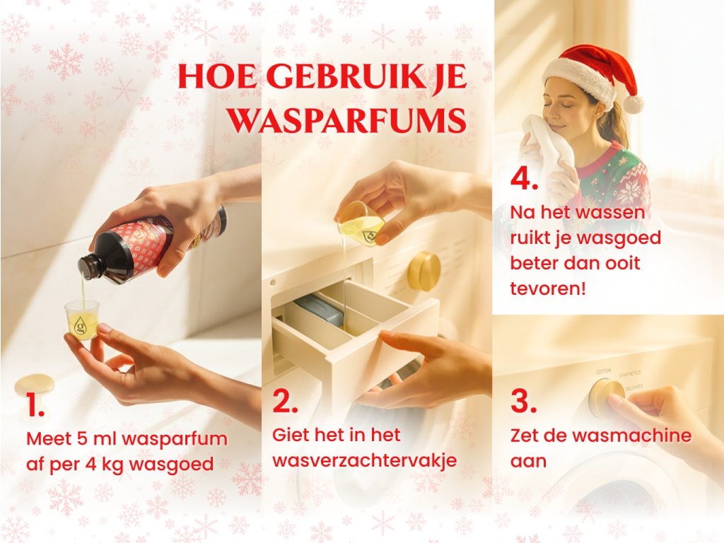 Gebruik: Giet 5 ml concentraat in het wasverzachterbakje. Deze hoeveelheid is één dosis voor 4 kg wasgoed. Het concentraat wordt niet verdund.Voor het doseren kun je de dop van de Giovani® wasparfum gebruiken, die overeenkomt met 3 ml; we raden aan om het dubbele te gebruiken. Om het doseren nog makkelijker te maken, kun je een maatbeker met ons logo of een doseerpomp aanschaffen. Gebruik dus slechts een kleine hoeveelheid en je wasgoed ruikt perfect!