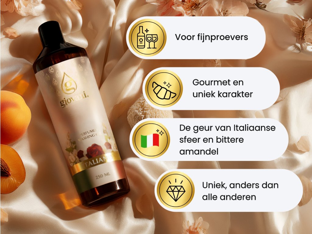 EEN LUXUEUZE ERVARING Na het wassen zal je was ruiken als een luxueus Italiaans parfum. |